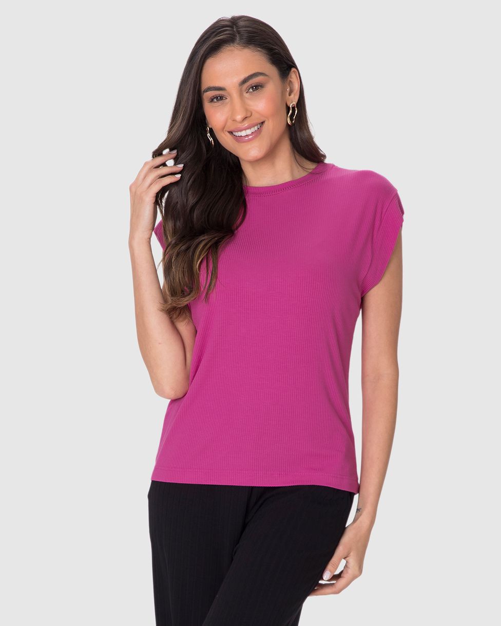 Blusa Ampla Feminina Decote Redondo Manga Curta Em Malha Viscose Canelada