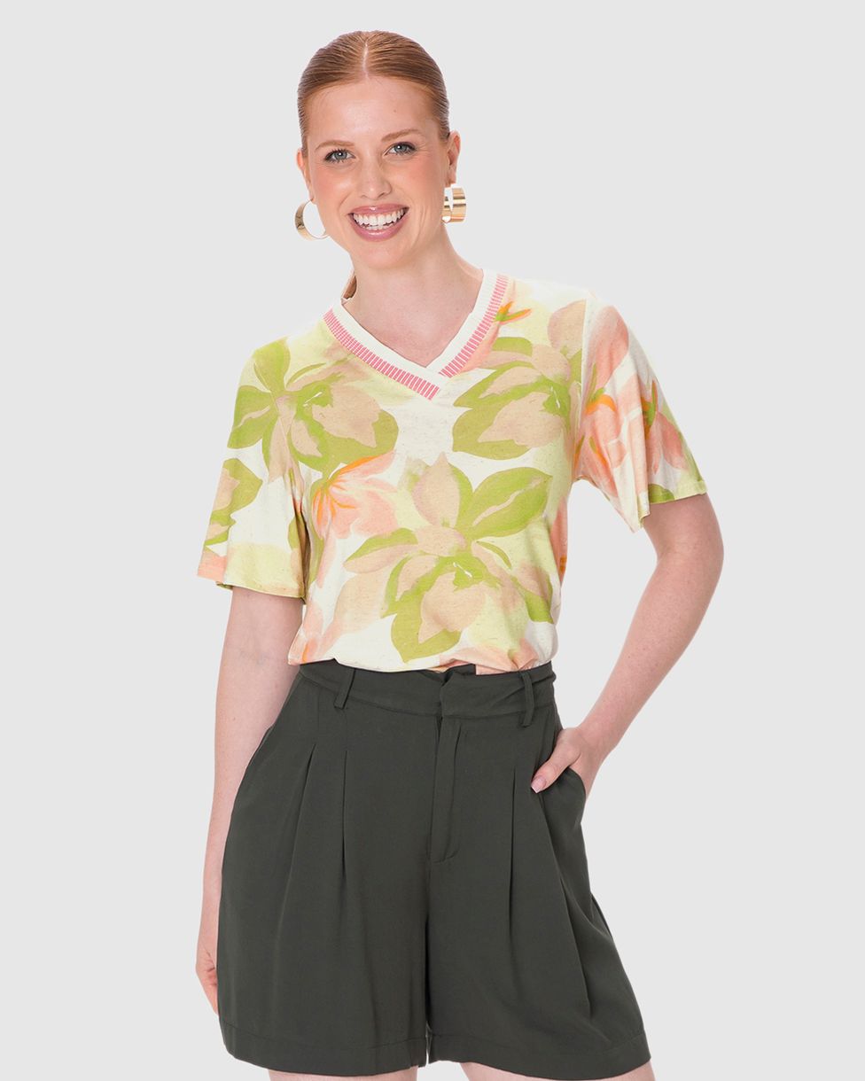 Blusa Ampla Feminina Decote V Retilínea Em Malha Viscolinho Stretch