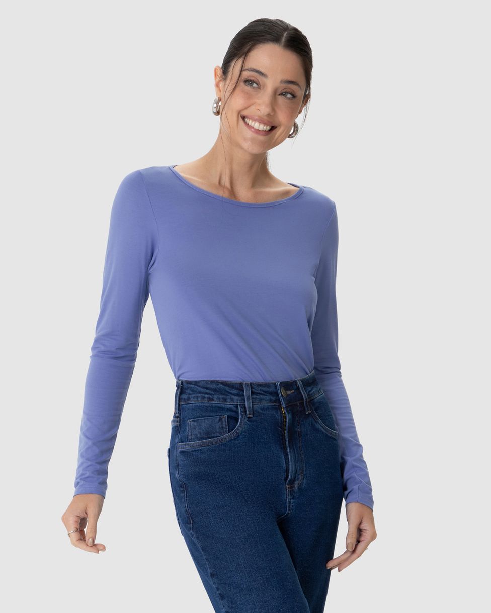 FemininoBlusas e CamisetasBlusas BásicasBlusa Básica Feminina Manga Longa Decote Canoa Em Viscose Stretch