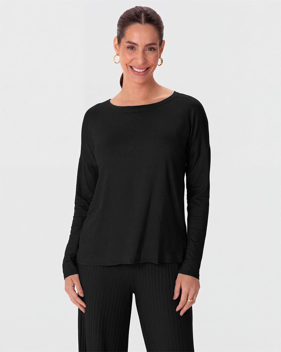 Blusa Básica Feminina Ampla Manga Longa Em Viscose Stretch