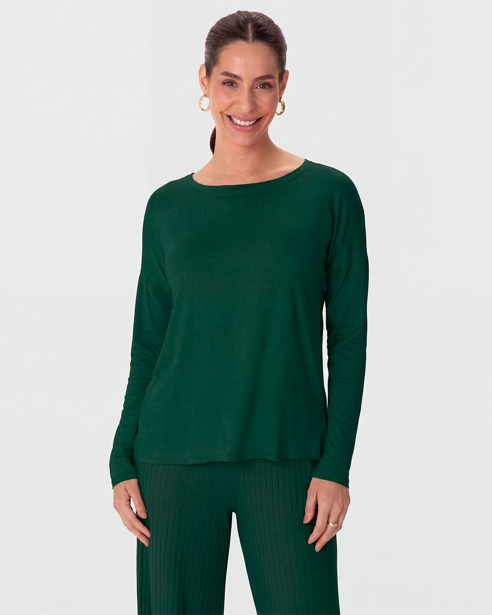 Blusa Básica Feminina Ampla Manga Longa Em Viscose Stretch