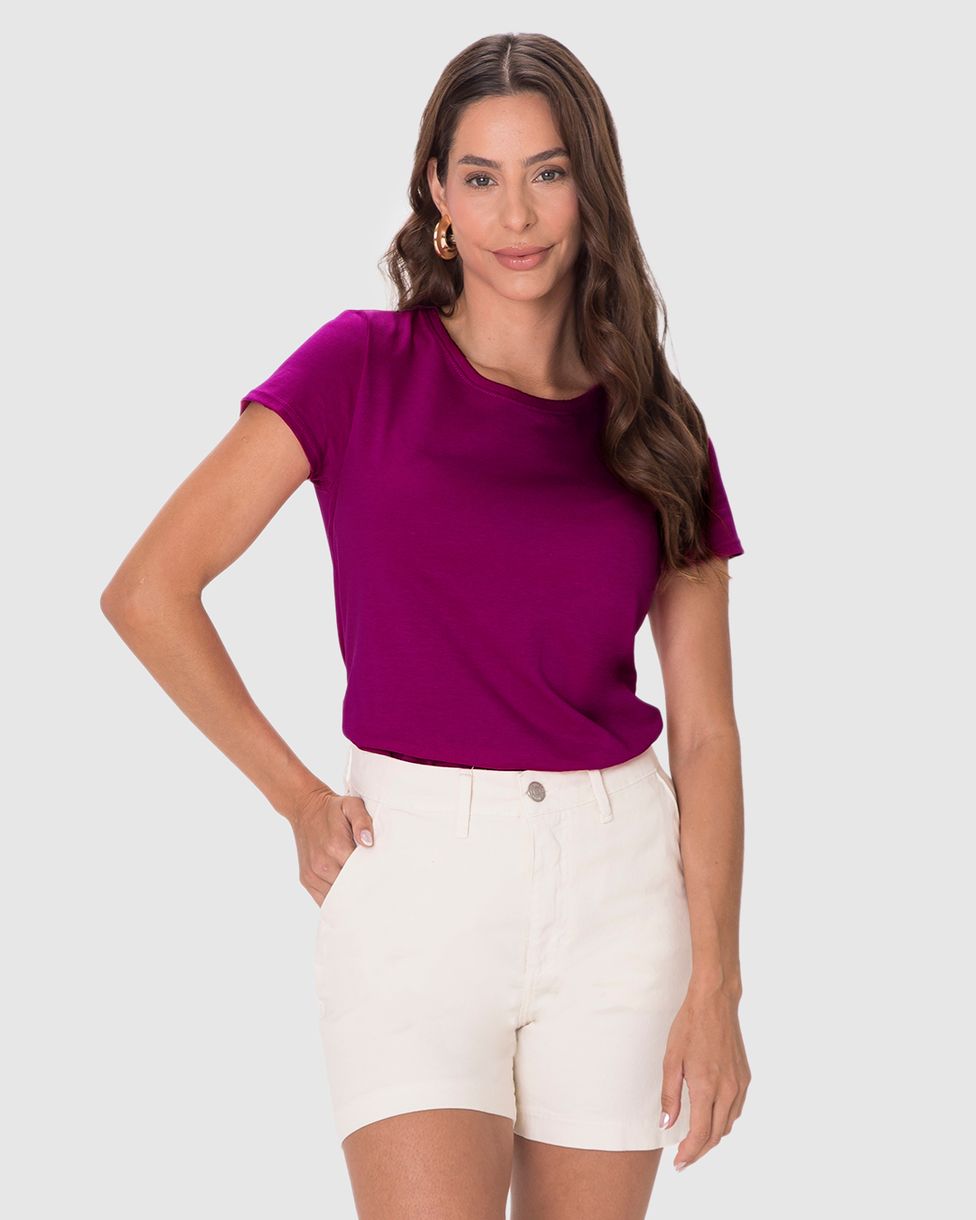 Blusa feminina feita em tecido de algodão 100%. A blusa Baby Look é uma peça essencial no guarda-roupa feminino, pois ela pode compor diversos looks! Essa peça em decote redondo, mangas curtas e modelagem levemente solta ao corpo, também foi feita em malha de algodão 100%, super confortável, respirável com toque macio e fácil manuseio, garantindo alta durabilidade e versatilidade no uso. É uma peça ideal para usar com mom jeans da Malwee e tênis baixo, para um visual casual!