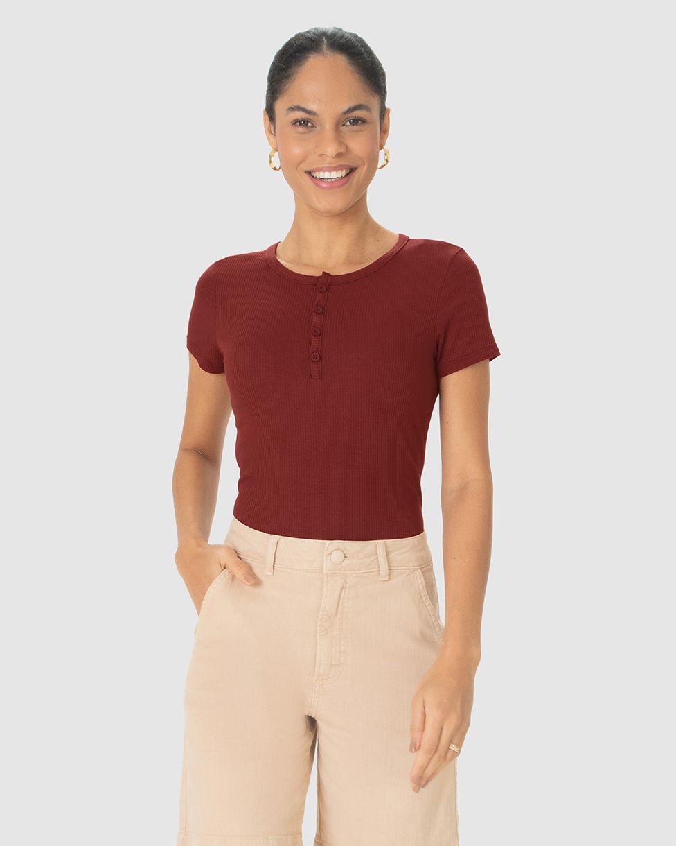 FemininoBlusas e CamisetasBlusas BásicasBlusa Básica Feminina Com Botões Frontais Em Malha Viscose Canelada