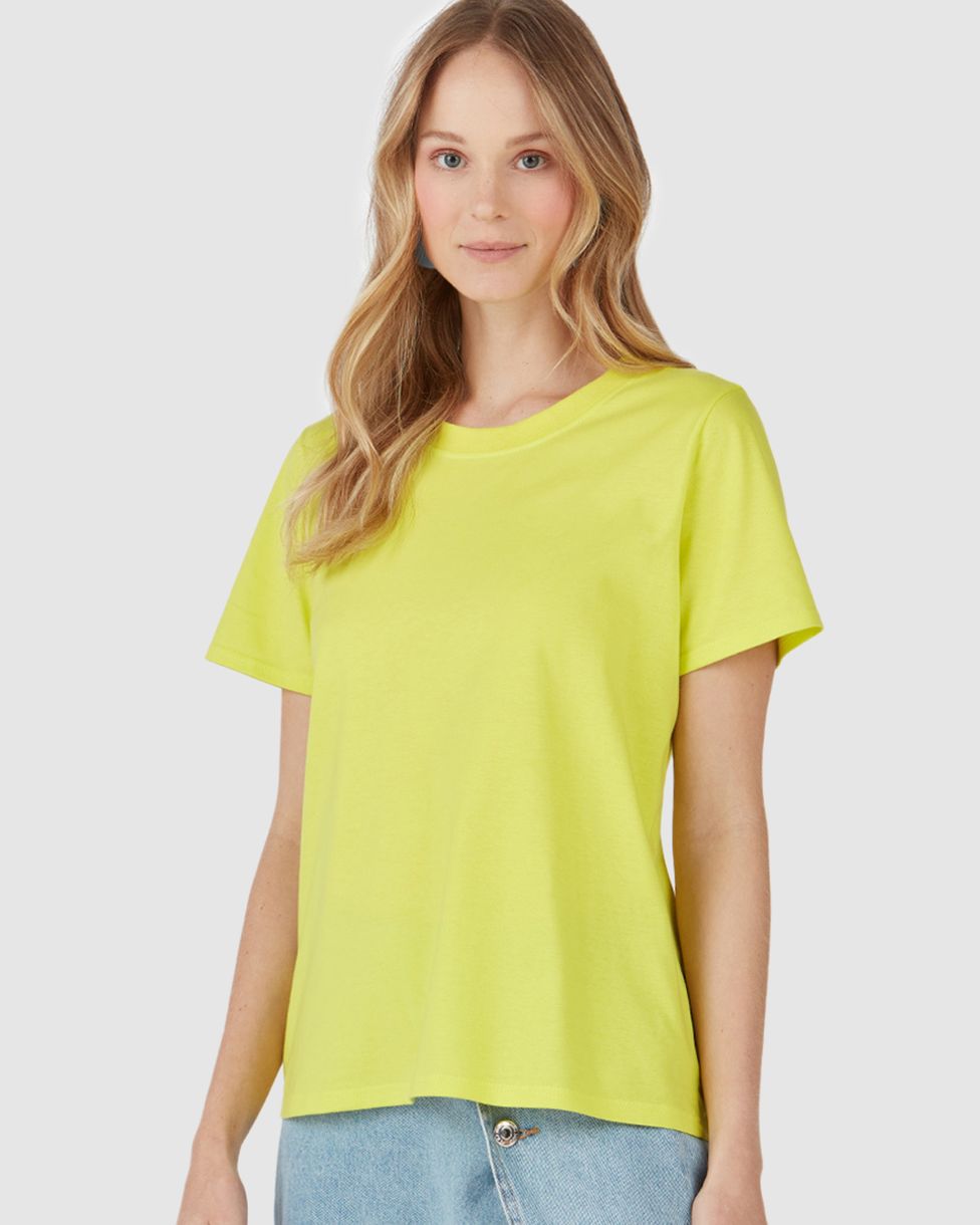 Blusa Básica Feminina Decote Redondo Com Pesponto Em Algodão