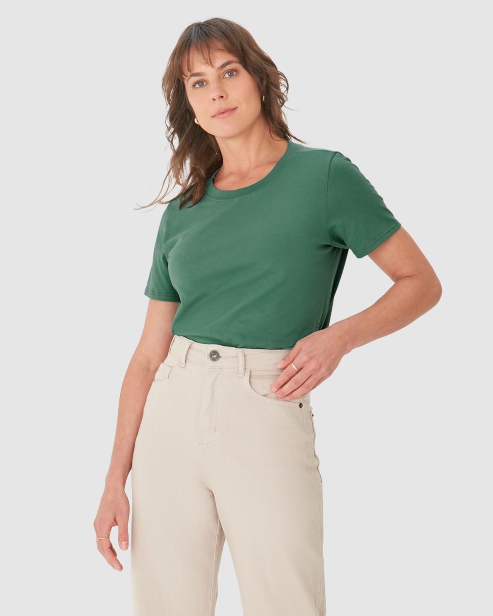 Blusa Básica Feminina Decote Redondo Com Pesponto Em Algodão