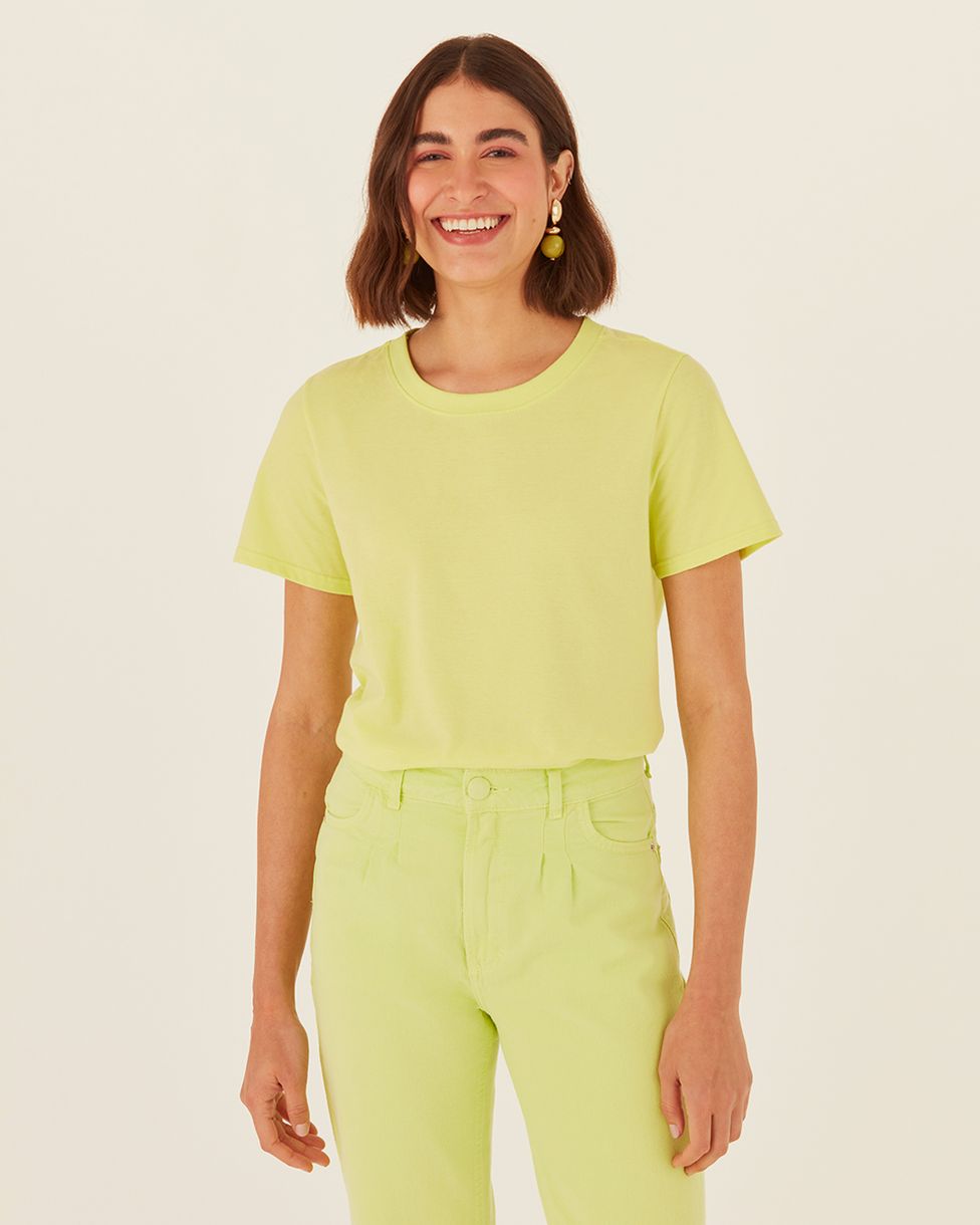Blusa Básica Feminina Decote Redondo Com Pesponto Em Algodão