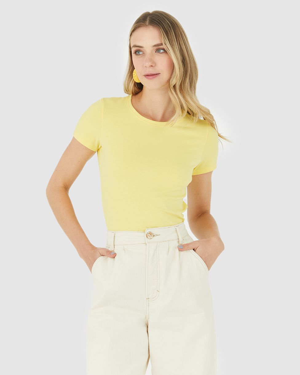 Blusa feminina feita em malha de algodão. A blusa Baby Look é uma peça essencial no guarda-roupa feminino, pois ela pode compor diversos looks! Essa peça com caimento ajustado ao corpo, conta com decote redondo e mangas curtas. Além disso, ela foi feita em malha de algodão super elástica e leve, sendo confortável, respirável de toque macio e fácil manuseio, garantindo alta durabilidade e versatilidade no uso. É uma peça atemporal e que pode ser usada de infinitas formas. Combine com calça mom jeans e tênis baixa, para um visual casual!