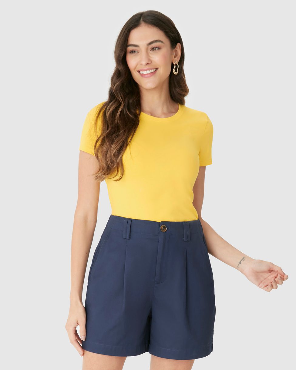 Blusa Básica Feminina Decote Redondo Em Algodão Amarelo - G