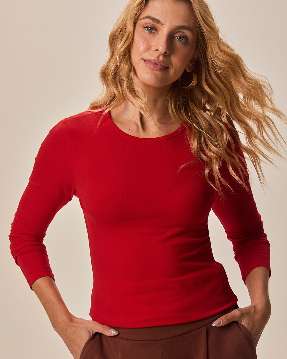 Blusa Básica Feminina Decote Redondo Em Algodão Vermelho - XGG