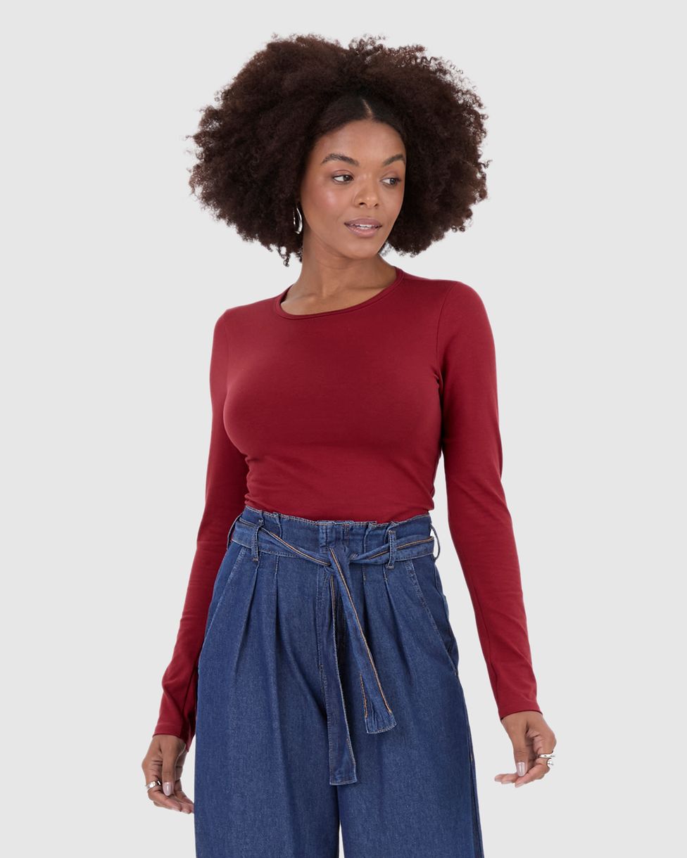 • Blusa Básica Feminina Em Algodão