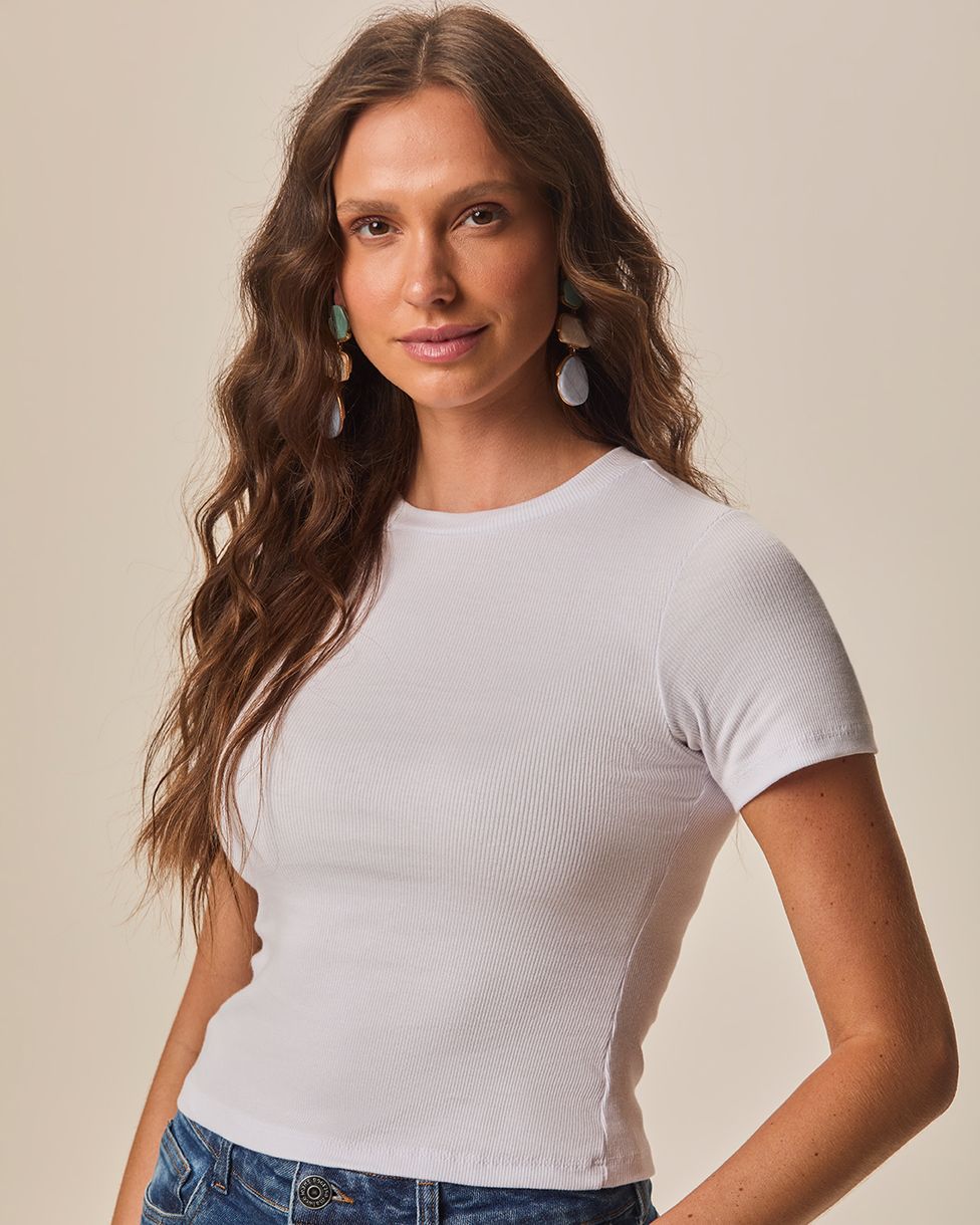 Blusa feminina feita em ribana conforto. Apresentando modelagem Long Cropped mais longa que a cropped, ficando na linha da cintura, esse modelo clássico e básico conta com decote redondo e mangas curtas. Com a fibra de algodão em sua composição, a malha ribana é um tecido em textura canelada, possuindo ótima elasticidade e caimento corporal.