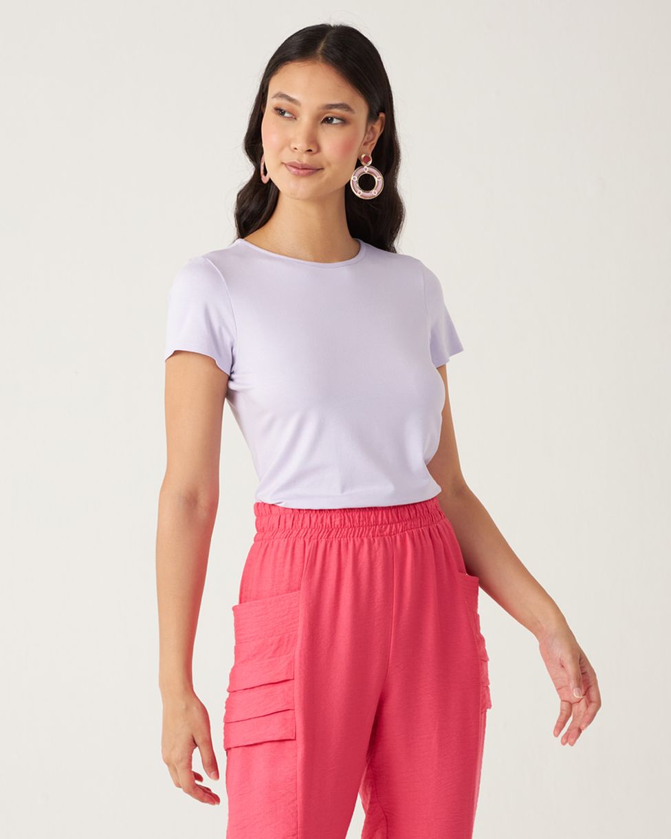 Blusa feminina feita em tecido de viscose stretch conforto. A blusa Tradicional com caimento solto ao corpo é a peça perfeita para todas as ocasiões. Também apresentando decote redondo e mangas curtas, ela foi feita em malha com stretch que possui viscose proveniente de reflorestamento em sua composição, permitindo conforto e frescor. É uma malha queridinha por aqui e sempre está presente nas nossas coleções, sendo uma peça atemporal e versátil, podendo ser usada de muitas formas!