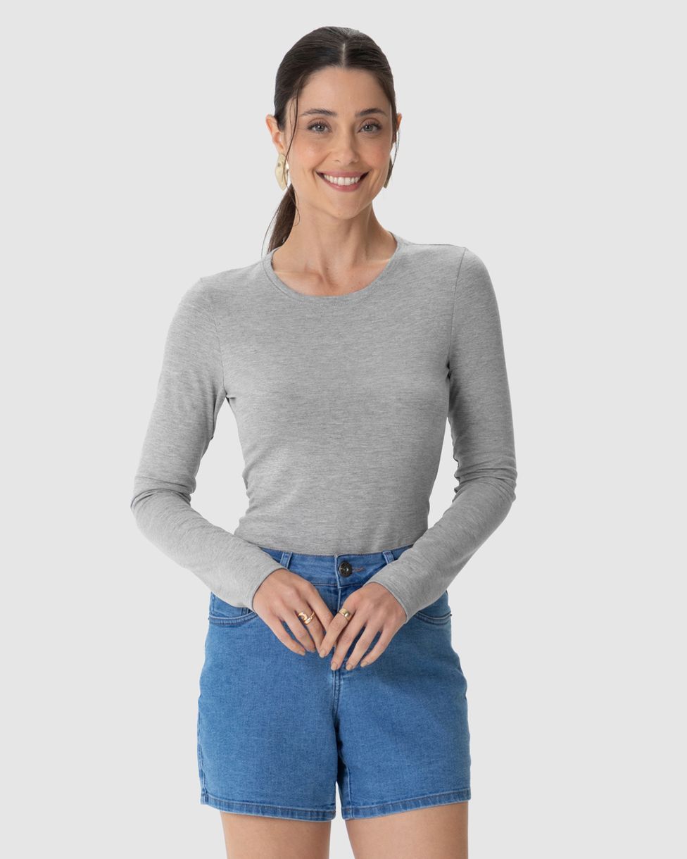 • Design: Decote redondo e manga longa, para um visual elegante e moderno
