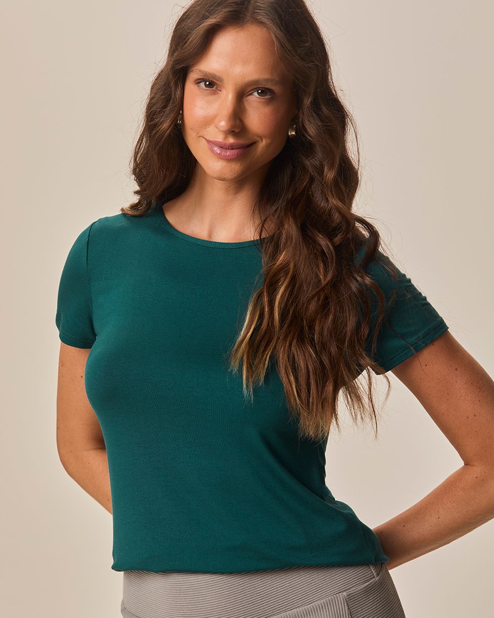 Blusa Básica Feminina Decote Redondo Em Viscose Stretch