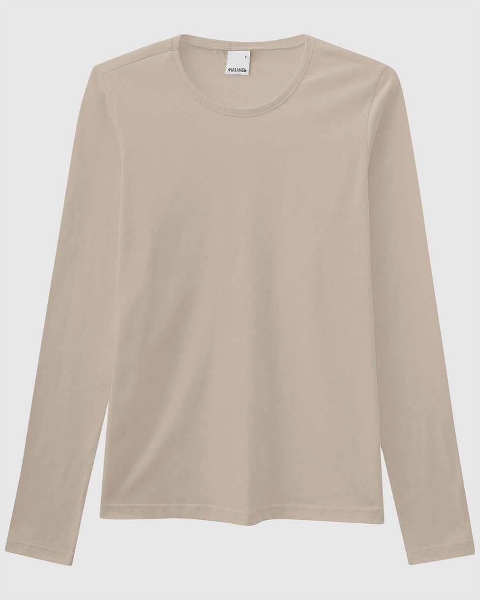 FemininoBlusas e CamisetasBlusas BásicasBlusa Básica Feminina Decote Redondo Manga Longa Em Algodão