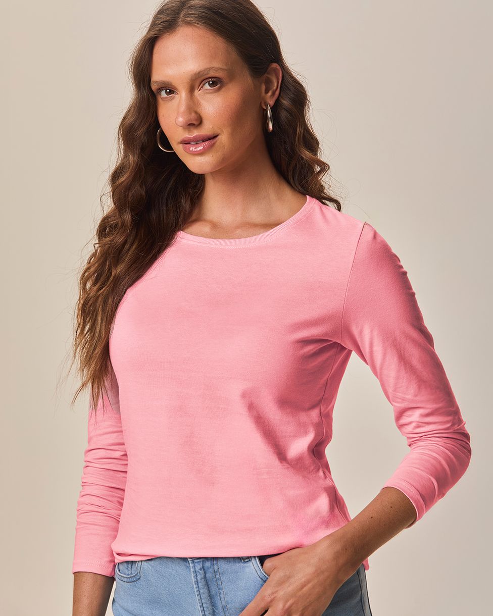 Blusa feminina feita em meia malha 100% algodão. A blusa Básica é uma peça essencial no guarda-roupa feminino, pois ela pode compor diversos looks! Essa peça em decote redondo, mangas longas e modelagem levemente solta ao corpo, também foi feita em malha de algodão 100%, super confortável, respirável com toque macio e fácil manuseio, garantindo alta durabilidade e versatilidade no uso.