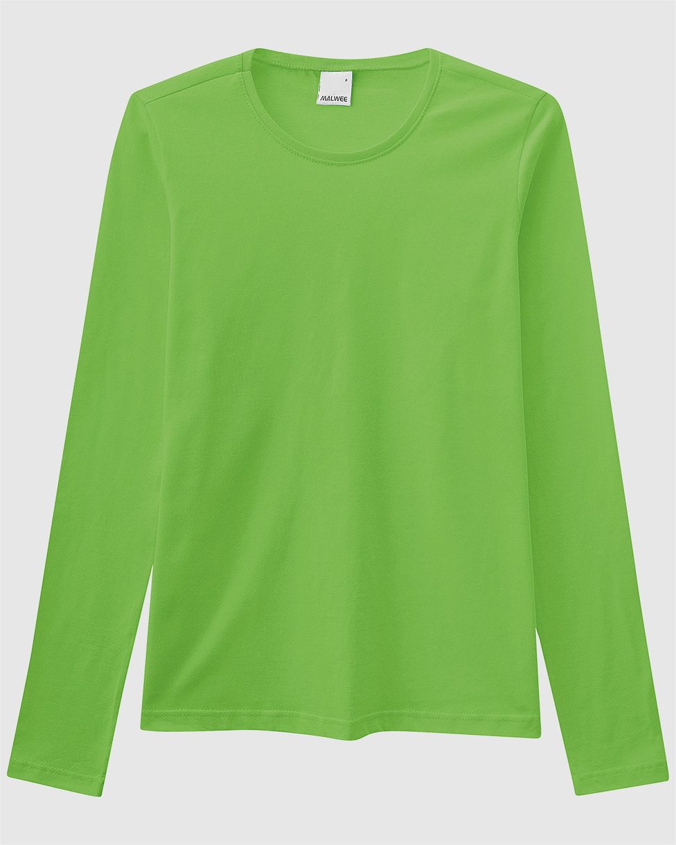 Blusa Básica Feminina Decote Redondo Manga Longa Em Algodão