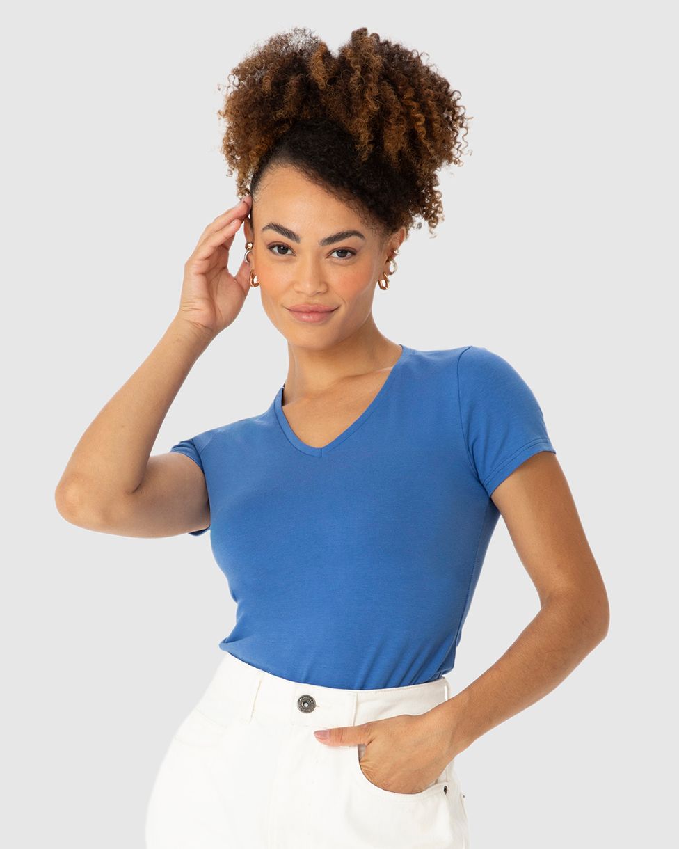 Blusa Básica Feminina Decote V Em Algodão
