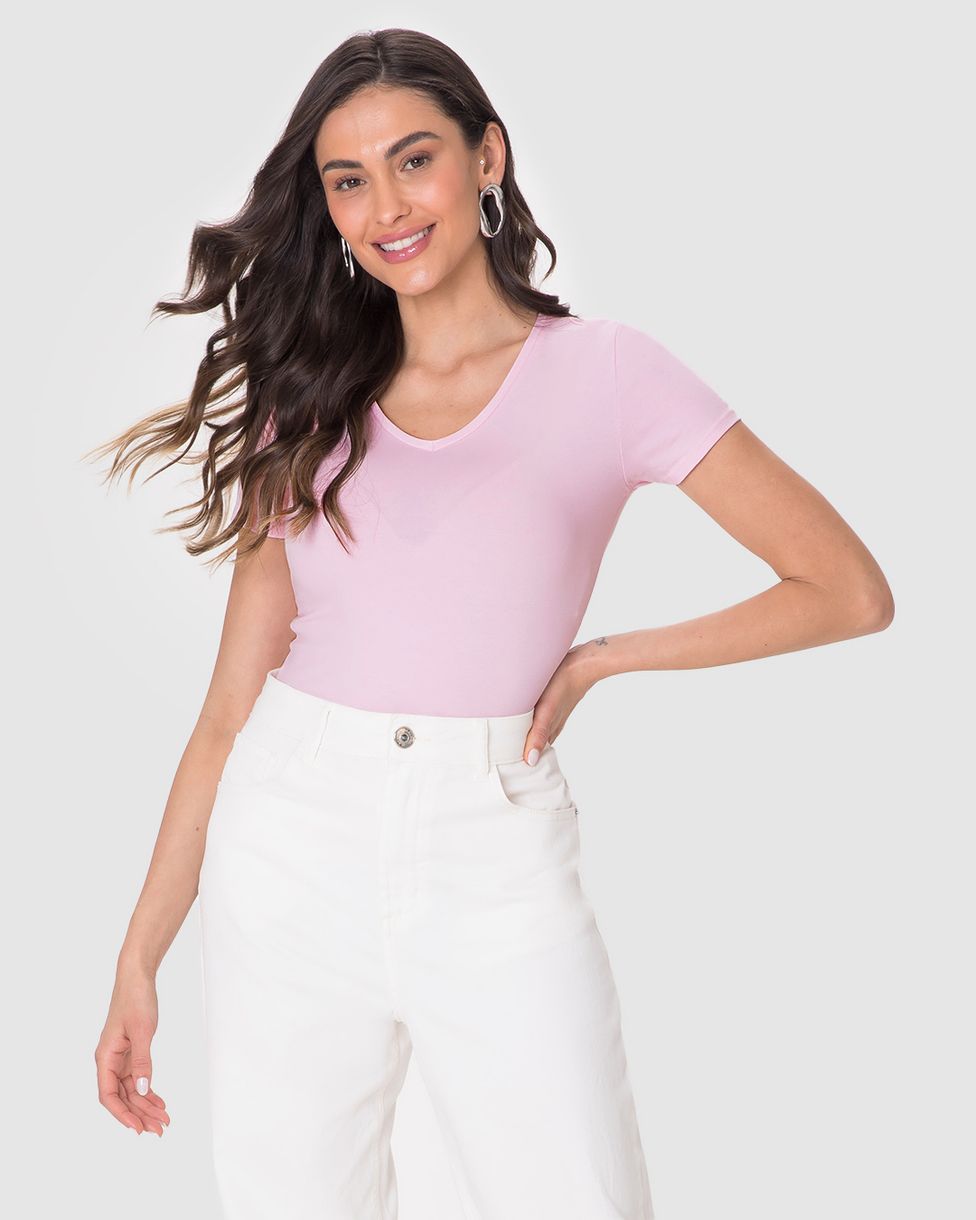 FemininoBlusas e CamisetasBlusas BásicasBlusa Básica Feminina Decote V Em Algodão