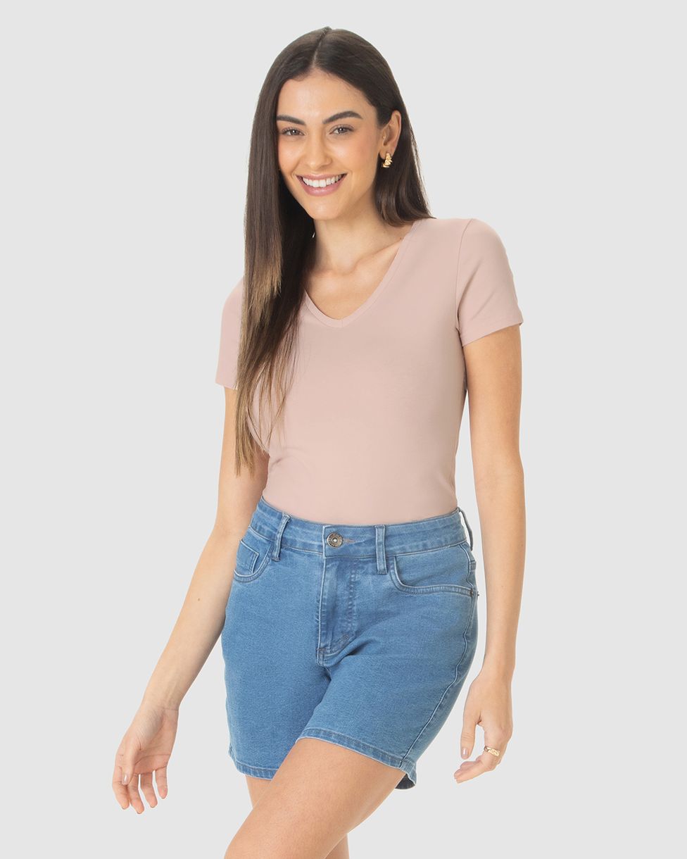 FemininoBlusas e CamisetasBlusas BásicasBlusa Básica Feminina Decote V Em Algodão