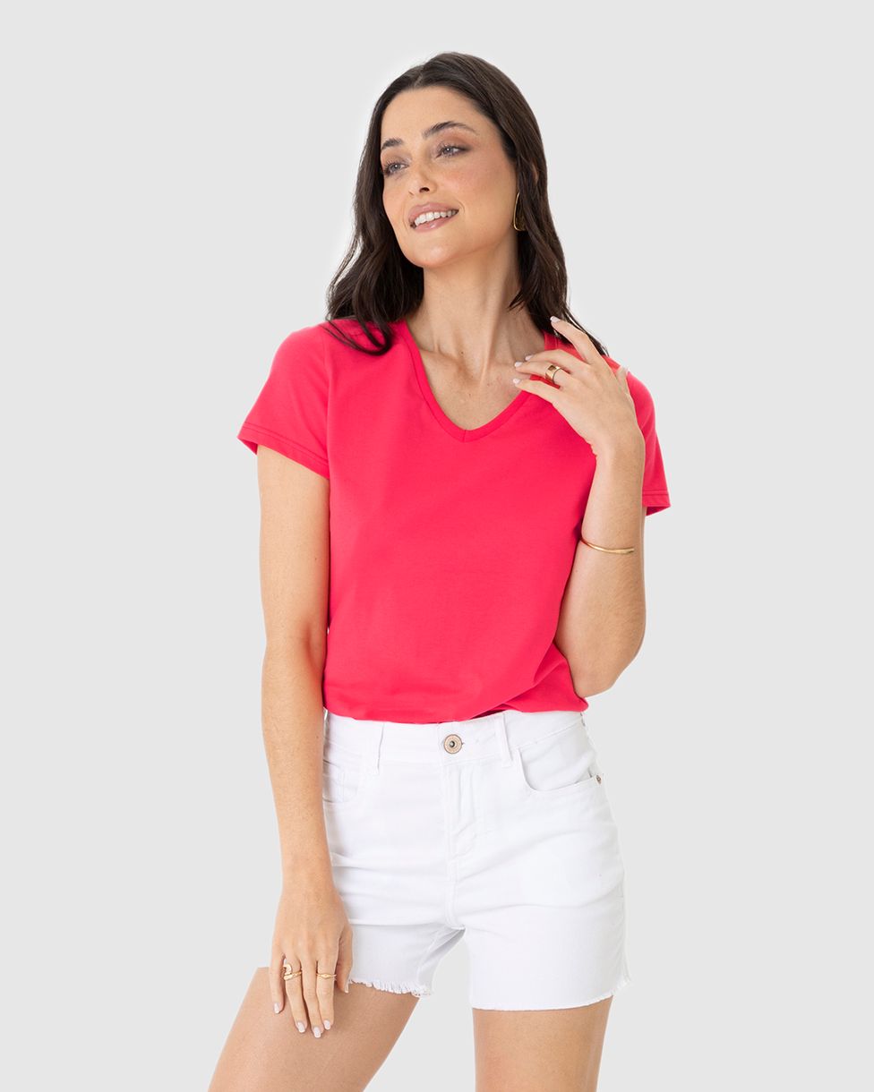 FemininoBlusas e CamisetasBlusas BásicasBlusa Básica Feminina Decote V Em Algodão