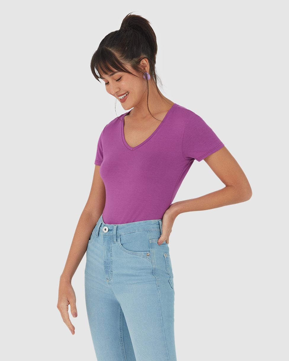 Blusa Básica Feminina Decote V Em Viscose Stretch