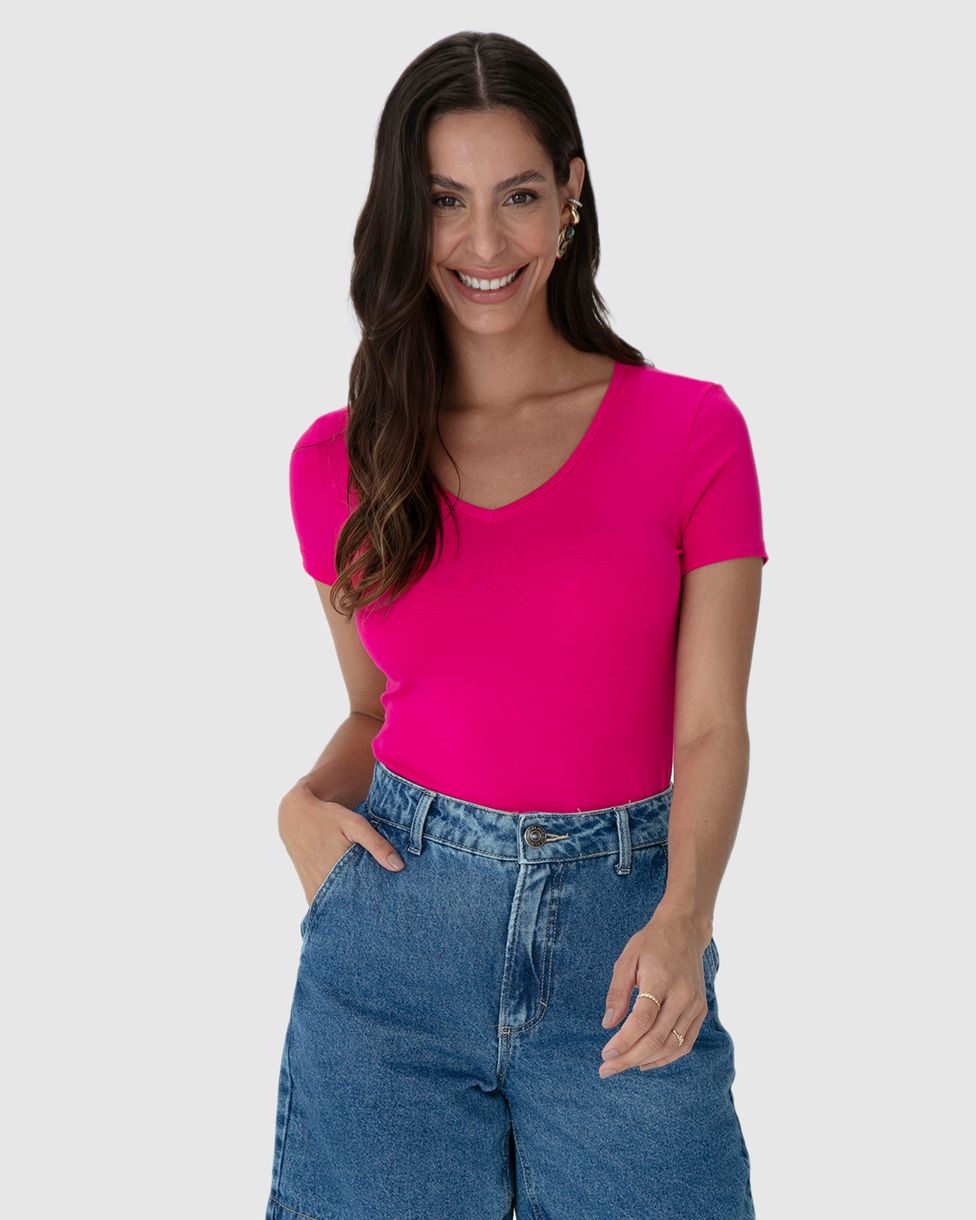 Blusa Básica Feminina Decote V Em Viscose Stretch