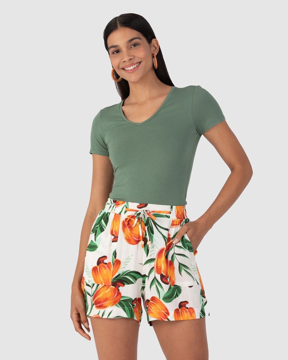 Blusa feminina feita em tecido de viscose stretch conforto. A blusa Baby Look é uma peça essencial no guarda-roupa feminino, pois ela pode compor diversos looks! Apresentando decote V e mangas curtas, ela foi feita em malha com stretch que possui viscose proveniente de reflorestamento em sua composição, ermitindo conforto e frescor. É uma malha queridinha por aqui e sempre está presente nas nossas coleções. Complete o look com shorts de sarja colorida Malwee e sandália de fibras naturais e curta os dias de calor!