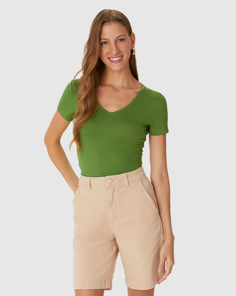 Blusa feminina feita em tecido de viscose stretch conforto. A blusa Baby Look é uma peça essencial no guarda-roupa feminino, pois ela pode compor diversos looks! Apresentando decote V e mangas curtas, ela foi feita em malha com stretch que possui viscose proveniente de reflorestamento em sua composição, ermitindo conforto e frescor. É uma malha queridinha por aqui e sempre está presente nas nossas coleções. Complete o look com shorts de sarja colorida Malwee e sandália de fibras naturais e curta os dias de calor!