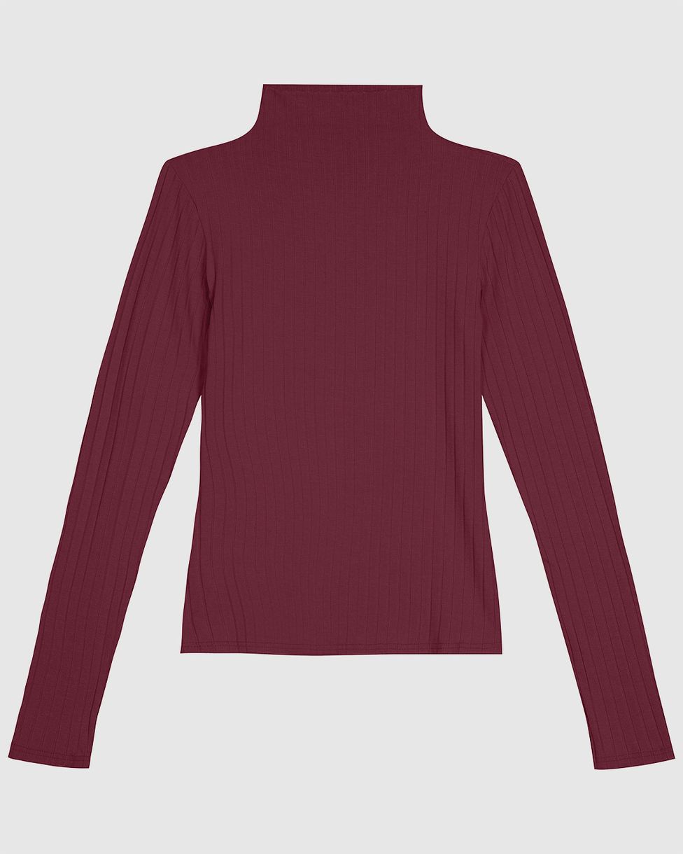 Blusa Básica Feminina Gola Alta Em Malha Canelada De Viscose