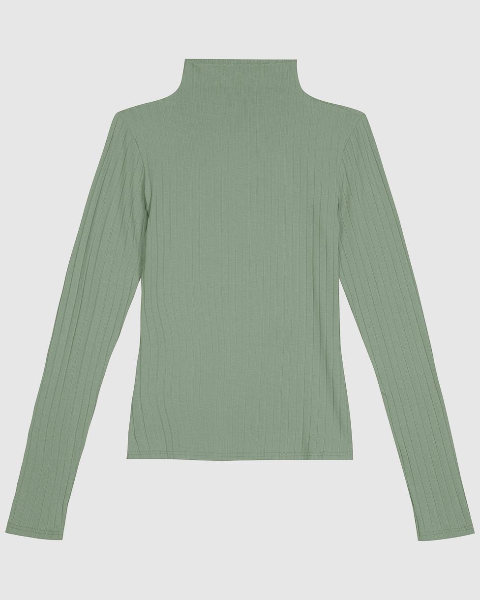 Blusa Básica Feminina Gola Alta Em Malha Canelada De Viscose