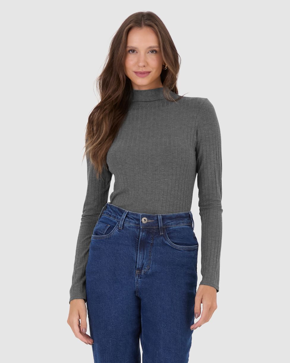 Blusa Básica Feminina Gola Alta Em Malha Canelada De Viscose