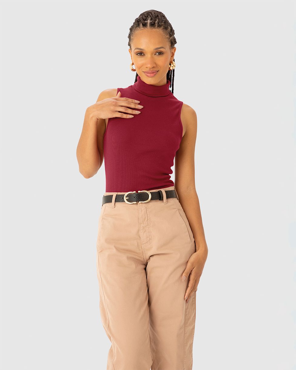 Blusa Básica Feminina Gola Alta Em Ribana - ENFIM