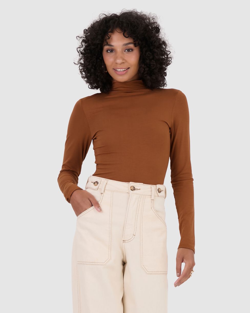 FemininoBlusas e CamisetasBlusas BásicasBlusa Básica Feminina Gola Alta Em Viscose Stretch