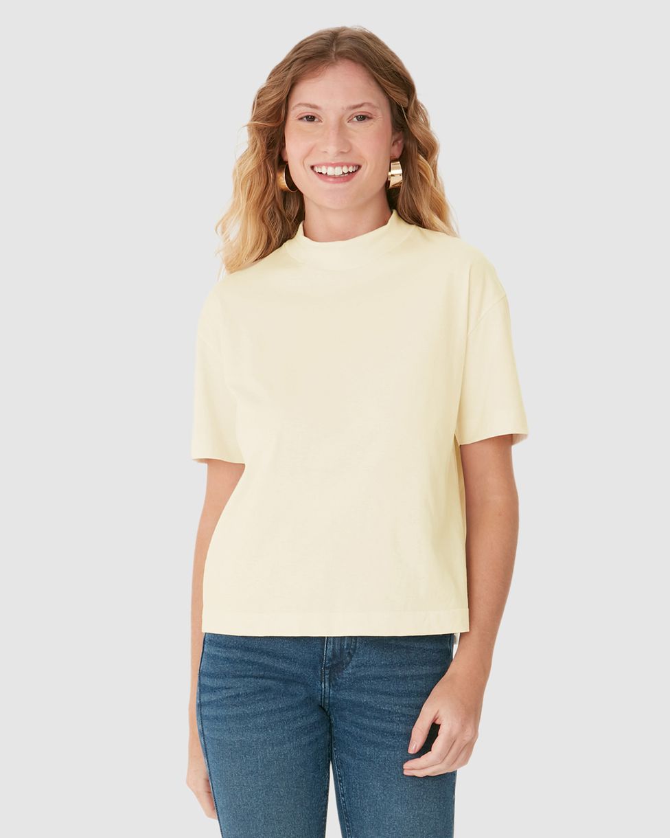 Blusa Básica Feminina Gola Alta Manga Curta Em Algodão