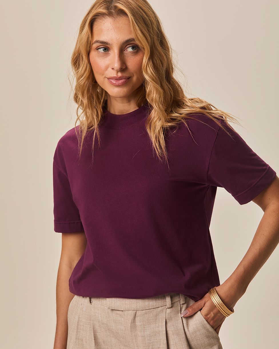 Blusa Básica Feminina Gola Alta Manga Curta Em Algodão
