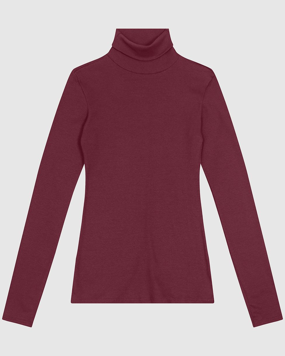 Blusa Básica Feminina Gola Alta Manga Longa Em Ribana