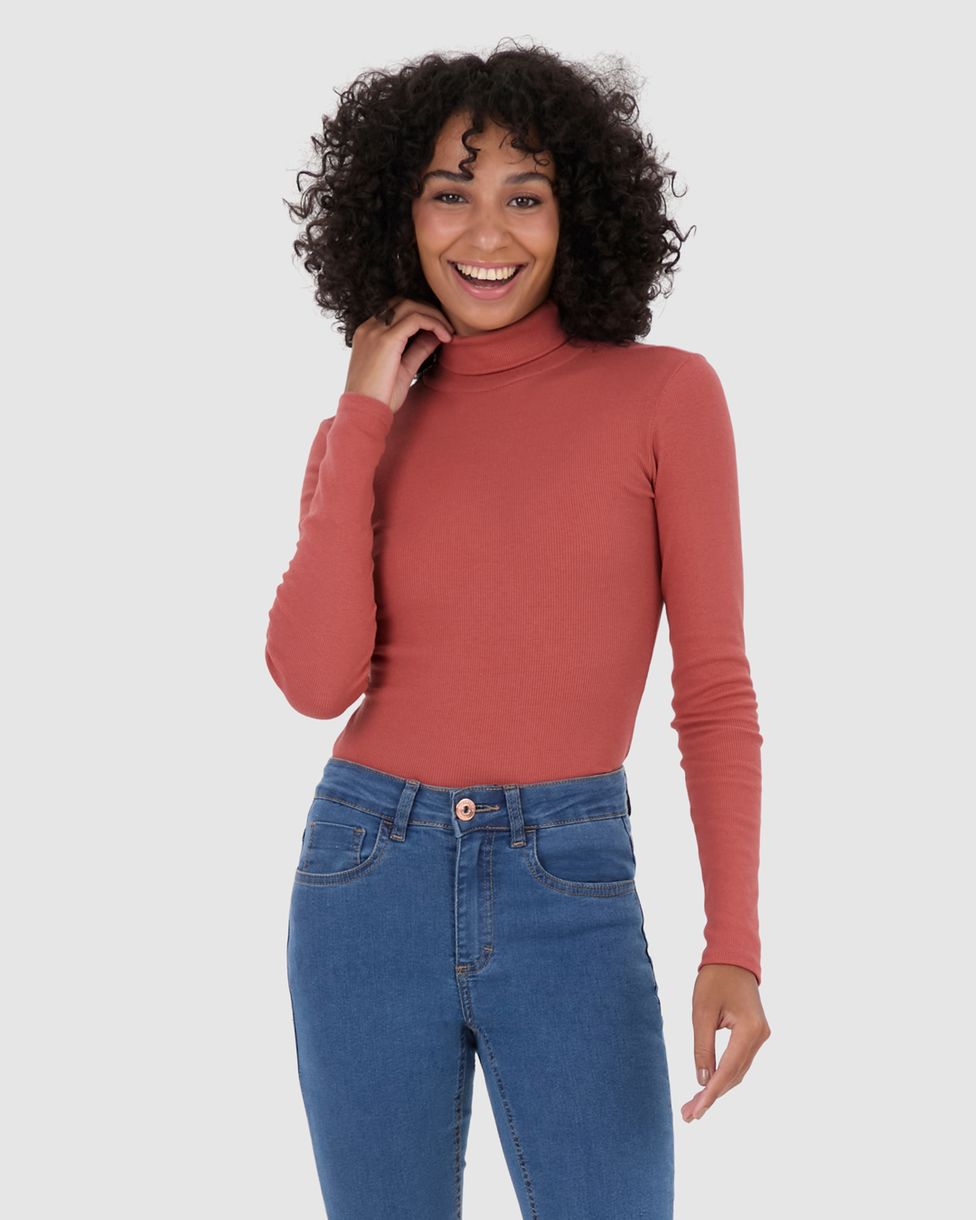 FemininoBlusas e CamisetasBlusas BásicasBlusa Básica Feminina Gola Alta Manga Longa Em Ribana