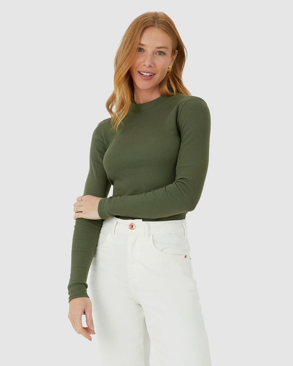 Blusa Básica Feminina Gola Alta Manga Longa Em Ribana