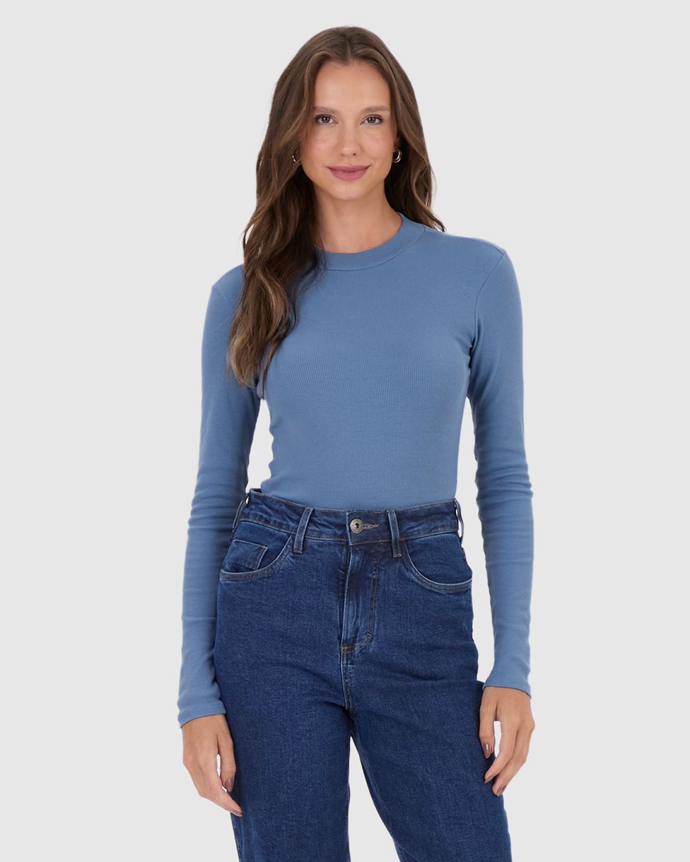 Blusa Básica Feminina Gola Alta Manga Longa Em Ribana