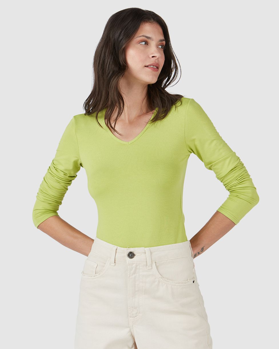 Blusa Básica Feminina Gola V Manga Longa Em Viscose Stretch