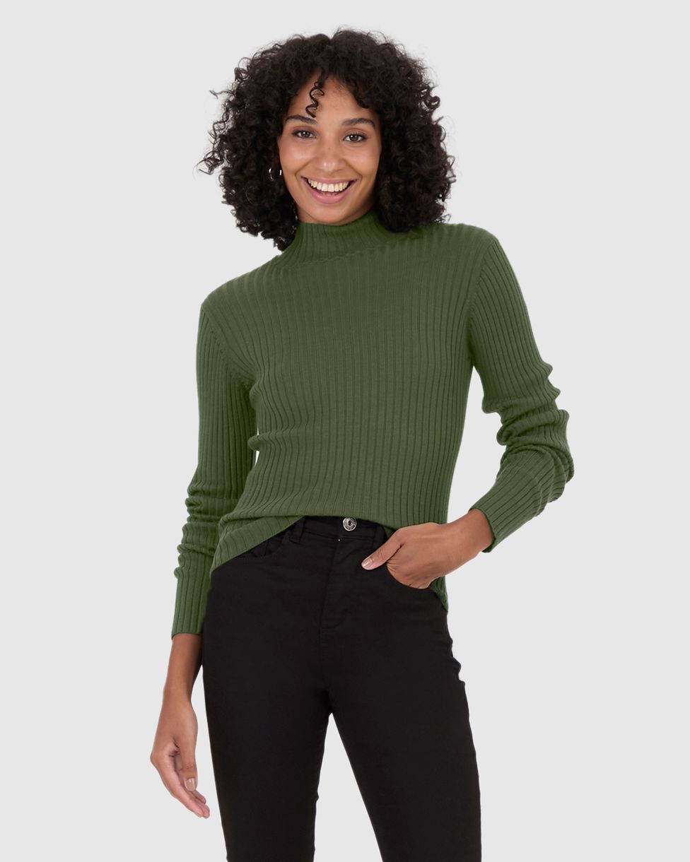Blusa Básica Feminina Justa Gola Alta Em Tricô Canelado