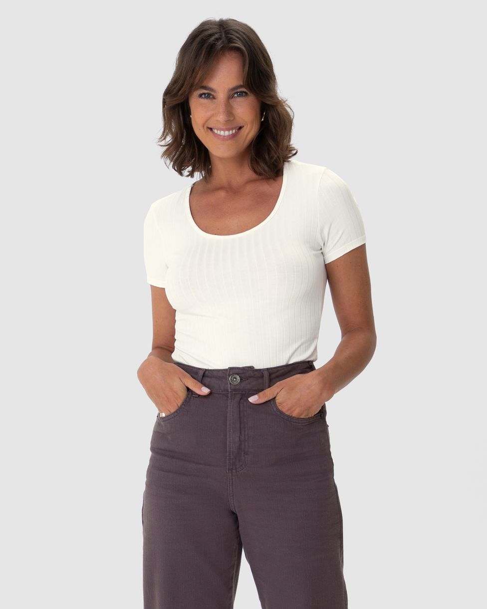 Blusa Básica Feminina Manga Curta Em Canelado De Viscose