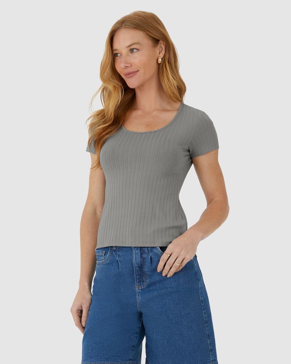 Blusa Básica Feminina Manga Curta Em Canelado De Viscose