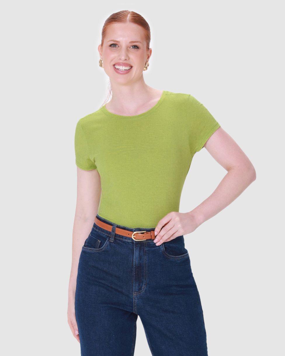 FemininoBlusas e CamisetasBlusas BásicasBlusa Básica Feminina Manga Curta Em Malha Viscolinho Stretch