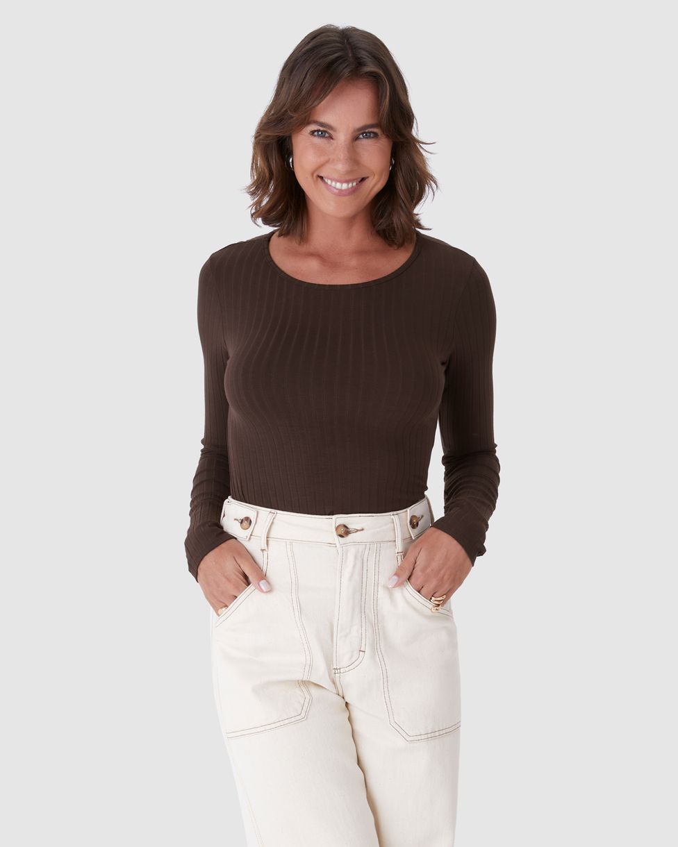 Blusa Básica Feminina Manga Longa Em Malha Canelada De Viscose