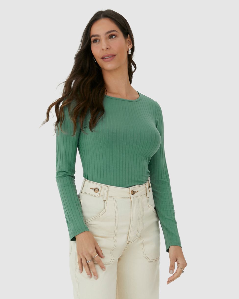 FemininoBlusas e CamisetasBlusas BásicasBlusa Básica Feminina Manga Longa Em Malha Canelada De Viscose