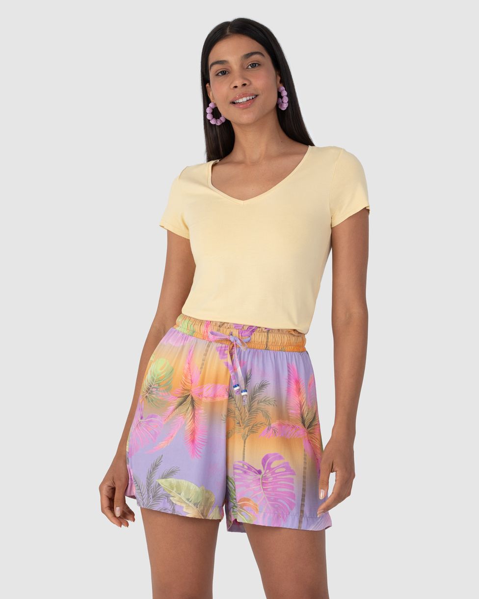 Blusa feminina feita em tecido de viscose stretch conforto. A blusa Mullet tem o seu diferencial por ter a parte traseira mais longo do que a frontal. Também apresentando decote V, mangas curtas e modelagem levemente solta ao corpo, ela foi feita em malha com stretch que possui viscose proveniente de reflorestamento em sua composição, permitindo conforto e frescor. É uma malha queridinha por aqui e sempre está presente nas nossas coleções, sendo uma peça atemporal e versátil, podendo ser usada de muitas formas!