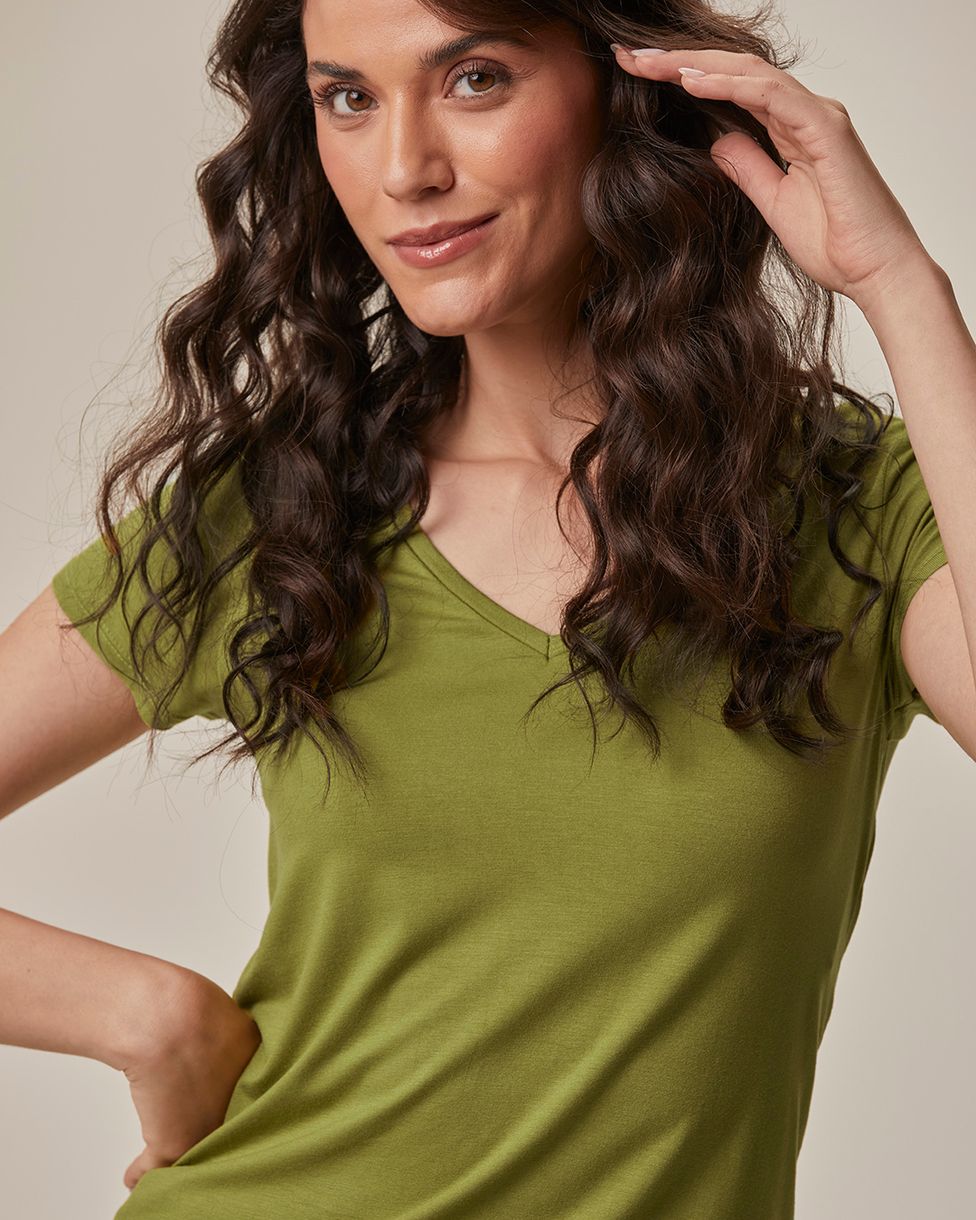 Blusa Básica Feminina Mullet Decote V Em Viscose Stretch Verde - XGG