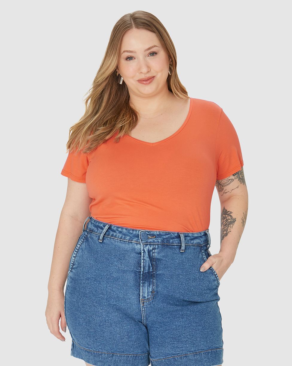 Blusa Básica Feminina Plus Size Barra Mullet Em Viscose Stretch